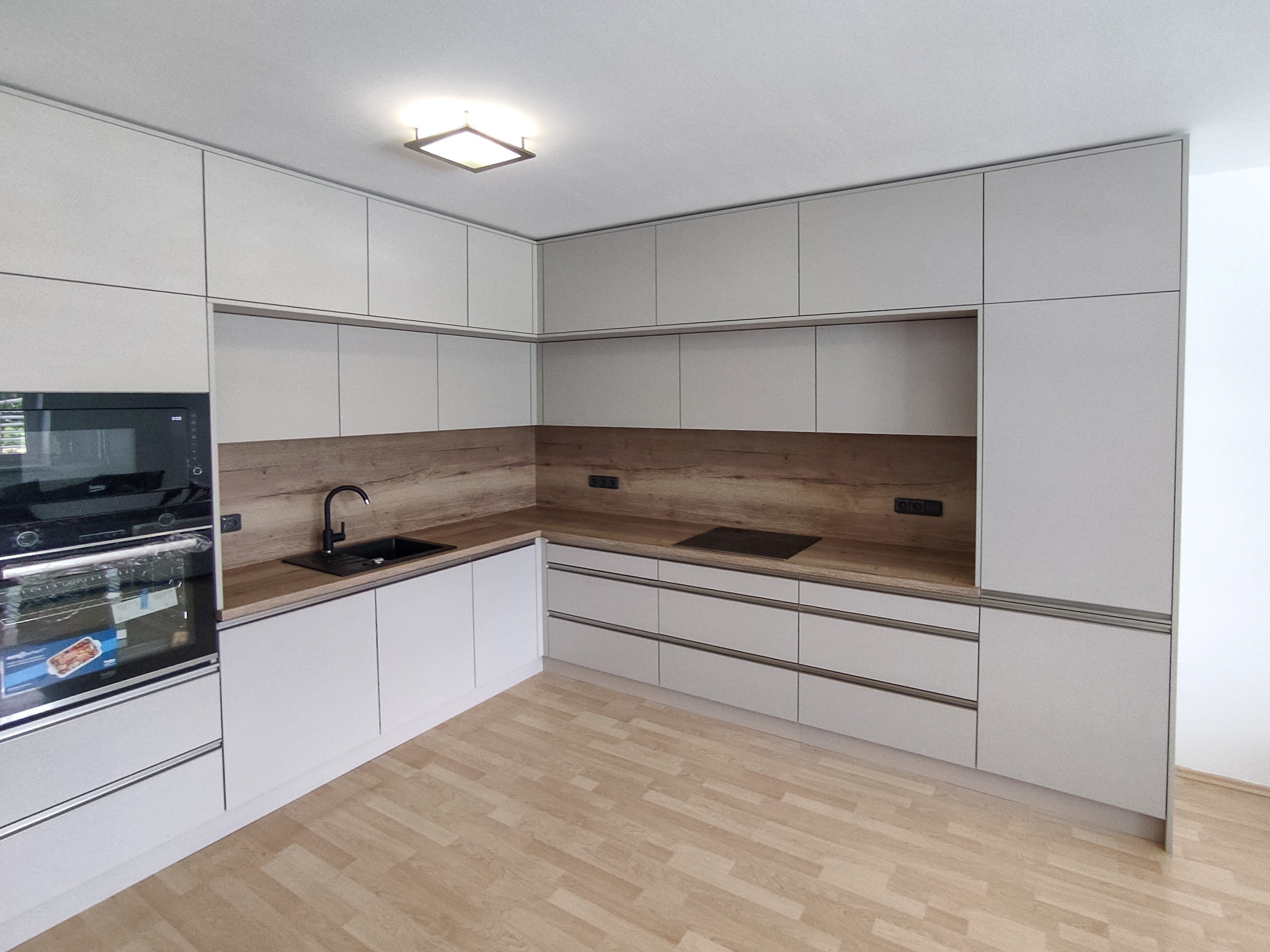 Jakmile máme základní představu, přijedu prostor osobně zaměřit. Pracuji s moderním nářadím, takže mohu zaručit maximální přesnost. Díky tomu všechno sedí na milimetr – bez improvizací na místě.
